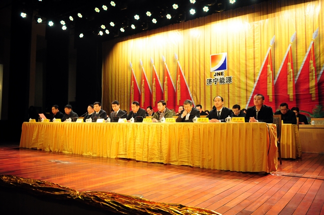 会上,集团公司副总经理郝敬尧宣读了《关于表彰2012年度先进集体和先进个人的决定》,向受表彰的先进集体和先进个人代表颁发了奖牌和证书。集团公司董事长、总经理虢洪增与济宁能源发展集团所属企业签订了2013年度《目标管理及和谐企业建设责任书》;济宁矿业集团总经理张广宇与济宁矿业集团所属企业签订了2013年度《目标管理及和谐企业建设责任书》。济宁矿业集团总经理张广宇代表公司作了题为《改革创新勇往直前,艰苦奋斗谱写新篇,努力开创集团公司可持续发展新局面》的工作报告;集团公司董事长虢洪增作了题为《深化改革,激发活力,迎接挑战,开创集团公司科学发展跨越发展新局面》的重要讲话。运河煤矿矿长马金平、霄云煤矿综采一区区长王兵分别代表先进集体和先进个人作了表态发言。