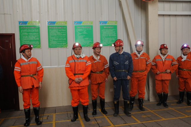 李区长一行在集团公司和矿领导的陪同下,深入到千米井下掘进工作面督导安全生产工作。先后来到井下中央变电所、中央泵房、制冷硐室掘进工作面、避难硐室等作业场所,查看现场安全质量标准化情况。了解矿井建设地质条件、建设进度、投产时间,了解掘进施工工艺。