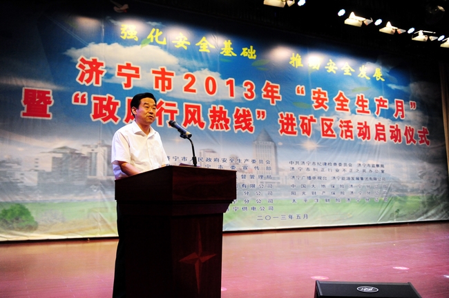 集团公司董事长虢洪增代表济宁能源发展集团在启动仪式上致辞。虢洪增说,今年6月是全国第十二个“安全生产月”。实践证明,持续开展“安全生产月”活动,对于提高人民群众安全素质,夯实安全管理基础,推动经济社会又好又快发展具有十分重要的意义。今年以来,济宁能源发展集团认真贯彻国家安全生产法律法规和上级关于加强安全管理的一系列指示精神,以超常的思维破解安全难题,以有力的措施控制安全风险,以严实的管理夯实安全基础,集团公司安全形势总体稳定,有力地保障了各项工作目标的实现。安全工作只有起点,没有终点;只有更好,没有最好。为此,在“安全生产月”期间,我们将按照市委、市政府的统一部署,围绕2013年“强化安全基础、推动安全发展”活动主题,精心组织,广泛发动,全面贯彻“安全第一、预防为主、综合治理”方针,始终保持安全工作常抓不懈的清醒认识,始终坚持“管理、装备、培训”并重,正视问题,超前防范,狠抓安全基层、基础建设,不断完善安全长效机制。通过扎实开展“安全生产月”活动,形成全员关注安全、严抓安全、确保安全的浓厚氛围,以月促季,以季促年,以安全发展、跨越发展的优异成绩为建设“平安济宁”、打造鲁西科学发展高地做出应有的贡献!