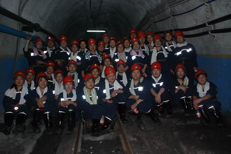 当天上午8:30分,矿嫂换好工作服,配好下井全部装备,在矿安全监察科和调度指挥中心负责人的带领下,大家乘罐笼下到井下-490大巷,乘坐人行车抵达-725水平后,步行了1个多小时的路,又爬坡,再上几百个台阶,腿都抖了;矿嫂们个个汗流浃背,个个叫累。到达采一工作面时,当女工们看到工作面的工人挥汗如雨,有的在支护顶板、有的在维护综采机电设备、有的清理浮煤、有的在调整胶带输送机的紧张工作场面时,大家都被感动了,亲身体会到了亲人们工作的艰辛。她们深情地对每一位职工说“你们辛苦了,一定要注意安全”。