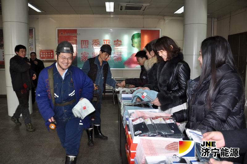 2014年元旦,花园煤矿为了给节日期间依然辛苦奋战在一线的职工们送去安全的叮咛和温馨的祝福,也为了增强职工在节日期间安全生产的自觉性。下午3点,该矿工会在副井口开展了“庆元旦、送祝福”迎新年慰问活动。