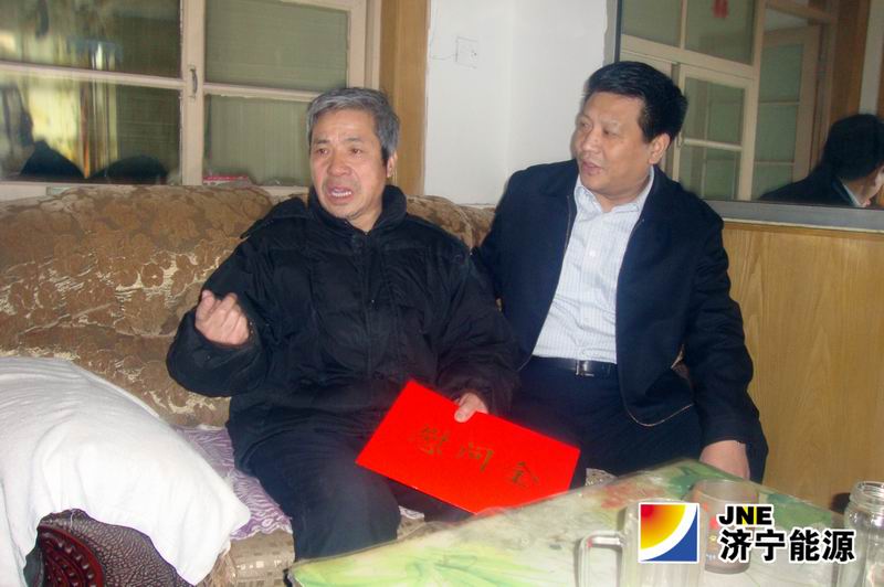 1月21日上午,新春临近之际,济宁能源发展集团董事长虢洪增、副总经理魏忠勋、工会主任苏进步一行,在运河煤矿矿长马金平,工会主席王利平,工会主任赵淑燕陪同下,先后走访慰问运河矿部分病困职工和家属,送去集团公司和企业的温暖和祝福。