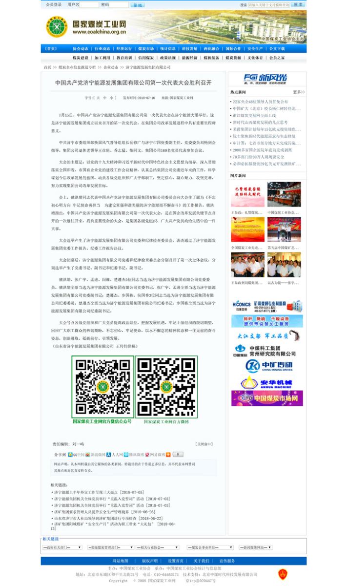 国家煤炭工业网 2018年7月16日 企业动态专栏: